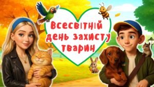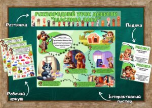 Опис методичного матеріалу: Конспект Сучасна анімована презентація Постер Розтяжка: «День захисту тварин» Мегарозмальовка: (варіанти: 8, або 18 аркушів А4) Роздаткові матеріали