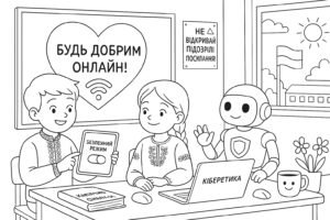Створено серію чорно-білих розмальовок до теми кібербезпеки для дітей. 🖍️💻🛡️