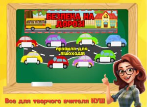 Оформлення класної дошки для проведення бесіди чи виховного заходу з безпеки життєдіяльності . Постер “Безпека на дорозі” .