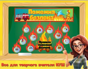 Оформлення класної дошки для проведення бесіди чи виховного заходу з безпеки життєдіяльності . Постер “Пожежна безпека” .
