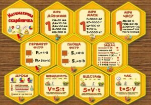 Матеріал для оформлення “Математична скарбничка”. Можна використати для оформлення класу, а також для виготовлення “підказочок” учням.