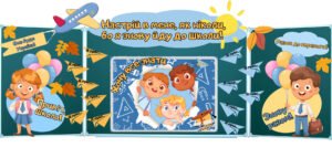 Сучасне яскраве оформлення дошки до першого уроку стане у нагоді вчителям початкових класів. Уся робота розроблена в одному стилі, тому зображення будуть гармонійно поєднуватись між собою.