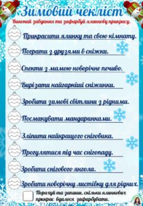 Зимовий чекліст для дітей. Зимовий чекліст для учнів на канікули.