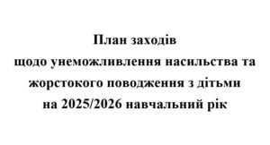 Комплексний план заходів щодо унеможливлення насильства та жорстокого поводження з дітьми на 2025/2026 навчальний рік