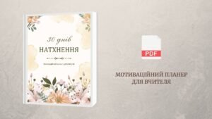 PDF-планер у форматі A5 (71 сторінка, з обкладинкою), створений спеціально для вчителів, які прагнуть зберігати енергію, знаходити натхнення й піклуватися про себе.