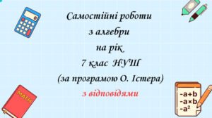 Самостійні роботи 7 клас НУШ (за модельною програмою О. Істера) на рік з групами результатів. В комплекті 12 робіт. З відповідями.