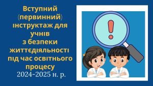 Матеріали для проведення класними керівниками вступного (первинного) інструктажу для учнів з безпеки життєдіяльності під час освітнього процесу