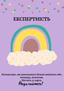 Колода підходить для особистого використання, а також для роботи в командах або групах, де цінується експертність, взаємодія та співпраця. Можливе використання на уроках, педрадах, тренінг.ах тощо.