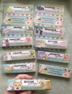 Етикетки на шоколадний батончик “Солодка аптечка” у весняному та звичайному дизайні