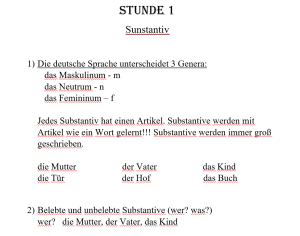 Роди іменників, іменники назви істот і неістот, вживання визначених та невизначених артиклів з іменниками, порядок слів у реченнях, заперечення іменників, а також, вправи на закріплення.