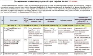 Модифікована навчальна програма Історія України. 8 клас. 52 години. НУШ. До підручника Хлібовська Г. та ін.