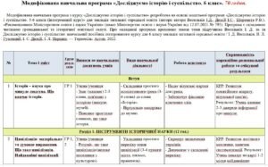 Модифікована навчальна програма Досліджуємо історію і суспільство. 6 клас. 70 годин. НУШ. До підручника Васильків І. та ін.