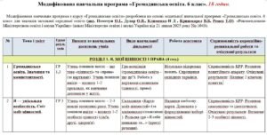Модифікована навчальна програма Громадянська освіта. 6 клас. 18 годин. З групами результатів. НУШ. До підручника Пометун О.
