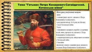 Гетьман Петро Конашевич-Сагайдачний. Хотинська війна. 8 клас (НУШ). Історія України. За підручником авторів Хлібовська Г. та інші.