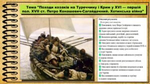 Походи козаків на Туреччину і Крим у XVI — першій половині XVII ст. Петро Конашевич-Сагайдачний. Хотинська війна. 8 клас (НУШ). Історія України. За підручником авторів Пометун О. та інші.