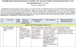 Модифікована навчальна програма «Вступ до історії України та громадянської освіти». 5 клас. 35 годин. 4-й рівень підтримки. З групами результатів. НУШ. До підручника Щупак І.