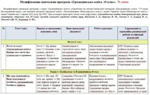 Модифікована навчальна програма «Громадянська освіта». 10 клас. 70 годин. 3-й рівень підтримки. З групами результатів. НУШ. До підручника Васильків І.