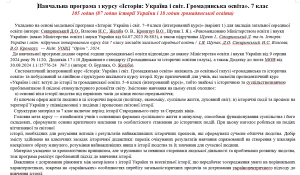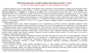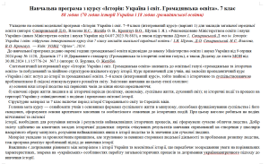 Навчальна програма «Історія: Україна і світ. Громадянська освіта (інтегрований курс)”. 7 клас. 88 годин. НУШ. За підручником Щупак І., а також модельною програмою Секиринський Д.
