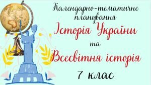 Календарно-тематичне планування ІСТОРІЯ УКРАЇНИ та ВСЕСВІТНЯ ІСТОРІЯ 7 клас (до підручників авторів І. Щупак О. Бурлака В. Дрібниця О. Желіба І.Піскарьова) 2024 з указанами сторінками параграфів