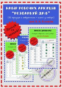 Робочі аркуші для відпрацювання теми “Натуральні дроби та мішані числа” у 3-х, 4-х, 5-х класах та на сімейному навчанні.