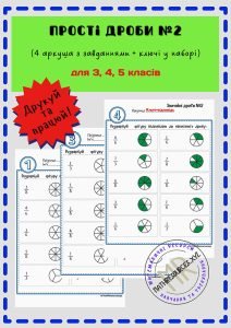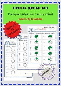 Набір робочих аркушів з математики за темами “Звичайні дроби та мішані числа” призначений для відпрацювання та закріплення розуміння цих понять та може застосовуватись у 3-5-хх класах.