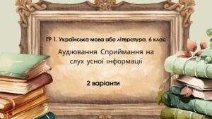 ГР 1. Підсумкова (діагностична) робота з української мови або літератури. Аудіювання тексту художнього стилю. 6 клас.