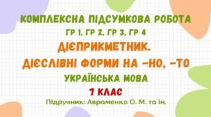 Комплексна підсумкова робота №4. Дієприкметник. Безособові форми на -но, -то. Українська мова. 7 клас НУШ (підручник: Авраменко О. М. та ін.)