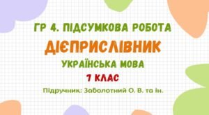 ГР 4. Підсумкова робота №4. Дієприкметник. Дієприслівник. 7 клас НУШ (підручник: Заболотний О. В. та ін.).