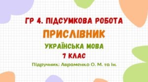 ГР 4. Підсумкова робота №5. Прислівник. 7 клас НУШ (підручник: Авраменко О. М. та ін.).