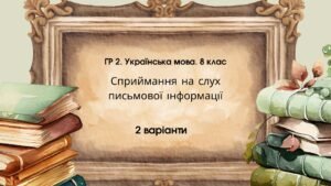 ГР 2. Підсумкова (діагностична) робота з української мови для 8 класу. “Сприймання письмової інформації”.