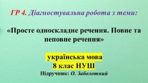 ГР 4. Діагностувальна робота. Просте односкладне речення. Повне та неповне речення 8 клас НУШ.