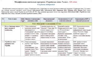 Модифікована навчальна програма Українська мова. 5 клас. 140 годин. НУШ. До підручника Заболотний О.