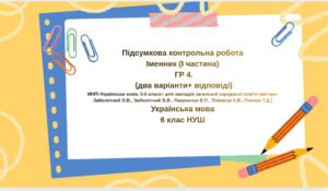 Підсумкова контрольна робота Іменник (І частина). ГР 4(2 варіанти + відповіді) Українська мова 6 клас