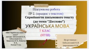 Підсумкова робота. ГР 2 (працює з текстом). Сприйняття письмового тексту (до теми “Дієслово”) Українська мова . 7 клас(НУШ) Завдання + відповіді