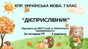 КПР. 7 клас. Українська мова. “Дієприслівник” за ЧОТИРМА групами результатів. Підходить до модельних навчальних програм Голуб та Заболотного. ПЕРЕВІРЕНО!!!!!