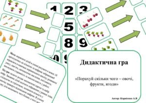 Дидактична гра “Порахуй скільки чого – овочі, фрукти, ягоди”