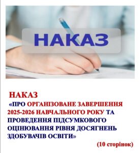 НАКАЗ ✍️«ПРО ОРГАНІЗОВАНЕ ЗАВЕРШЕННЯ 2025-2026 НАВЧАЛЬНОГО РОКУ ТА ПРОВЕДЕННЯ ПІДСУМКОВОГО ОЦІНЮВАННЯ РІВНЯ ДОСЯГНЕНЬ ЗДОБУВАЧІВ ОСВІТИ” ✍️ (10 сторінок)