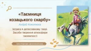 Сучасна змістовна ПРЕЗЕНТАЦІЯ “А. Кокотюха. Повість “Таємниця козацького скарбу”. Інтрига в детективному творі. Засоби творення атмосфери таємничості”, що побудована в стилі WOW-уроку. 47 СЛАЙДІВ,