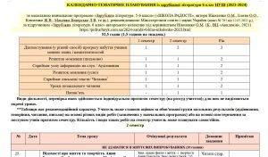 Орієнтовне КАЛЕНДАРНО-ТЕМАТИЧНЕ ПЛАНУВАННЯ із зарубіжної літератури 6 клас НУШ (2023-2024)2 семестр