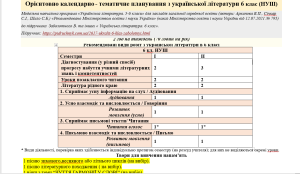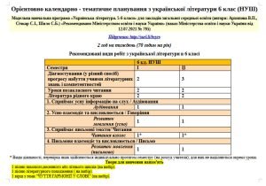 Орієнтовне КТП з української літератури на 2 семестр 6 клас (НУШ) на 23-24 н.р. (Архипова)