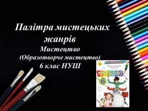 Презентація “Палітра мистецьких жанрів” створена за матеріалами підручника “Мистецтво” 6 клас Нова українська школа, автори Аристова, Чєн. 2023 р