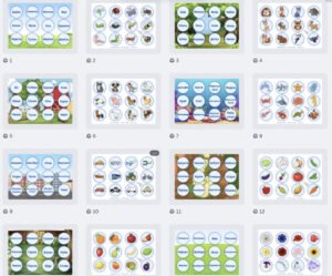8 лексичних тем. Кольорові поля зі словами, шукаємо відповідні картинки та закриваємо слова.