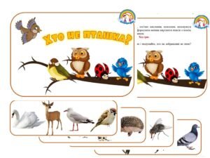 Дидактична гра “Хто не пташка?” спеціально до дня птахів 1 квітня !!!! Містить: титул, мету та хід гри, 20 карток (по 2 на А4).