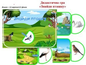 Матеріал до дня птахів. гра містить: титул, мету та хід гри, 10 карток+ 10 пташок.