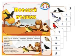 Матеріал до міжнародного дня птахів 1 квітня !!!! Дидактична гра “Порахуй пташок”. Містить: титул, мету та хід гри, 20 карток (по 2 на А4).