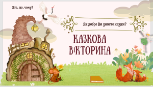 Казкова вікторина ( початкова школа) 1-2 клас Найкраща літературна вікторина для малюків — та, яка містить запитання про улюблені казки! Лисичка і Журавель, Курочка Ряба і Пан Коцький — упізнаєш цих