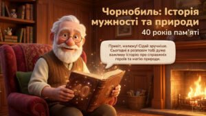 Сучасна пізнавальна презентація для дітей, яка у доступній формі розкриває події Чорнобиля: історію міста, роль електроенергії, подвиг ліквідаторів та важливість пам’яті.