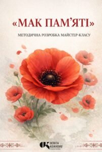 Методичні рекомендації майстер-класу «Мак пам’яті». Містить покрокову інструкцію виготовлення паперового маку та шаблон карти України для створення спільної патріотичної аплікації.