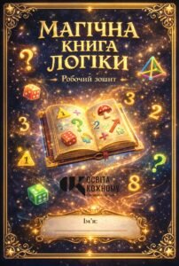 Про що: Збірник різнотипних логічних головоломок та математичних задач для дітей, стилізований під чарівну книгу квестів.