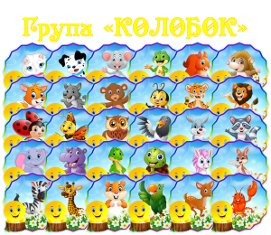 Наліпки. Група “Колобок” для оформлення групи Включає: 30 малюнків(наліпок) + емблема